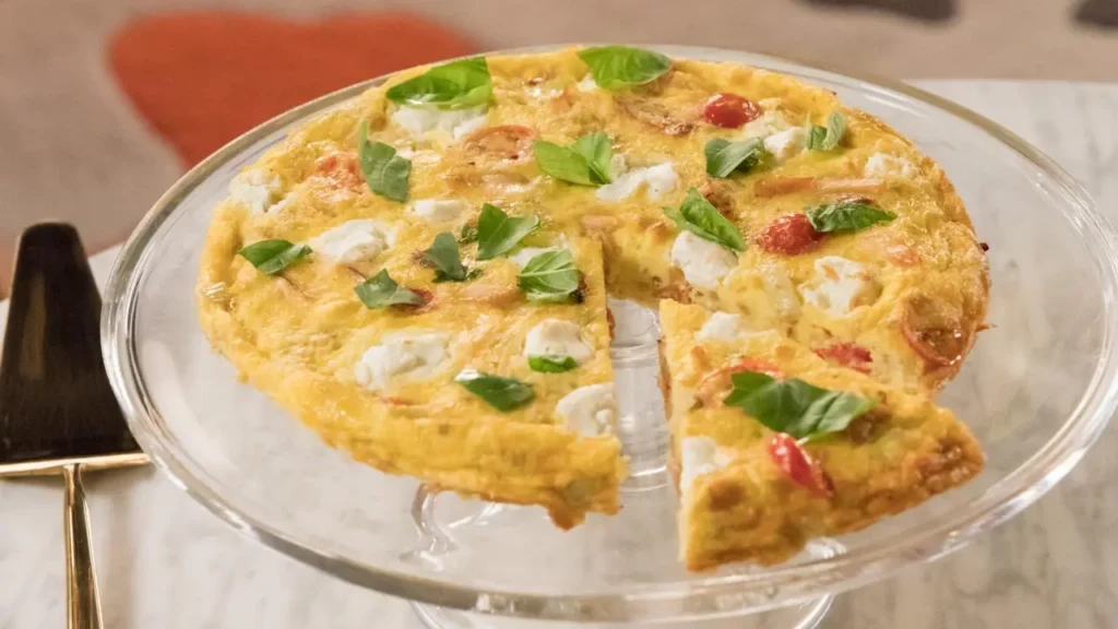 This easy-to-make frittata uses flaked smoked trout, sautéed fennel and shallots, cherry tomatoes and fresh basil folded into a cream-rich egg base. After cooking on the stovetop and a brief broil, it’s served warm in slices—perfect for brunch or a festive seafood-forward gathering. Courtesy of Giada De Laurentiis on the Food Network.