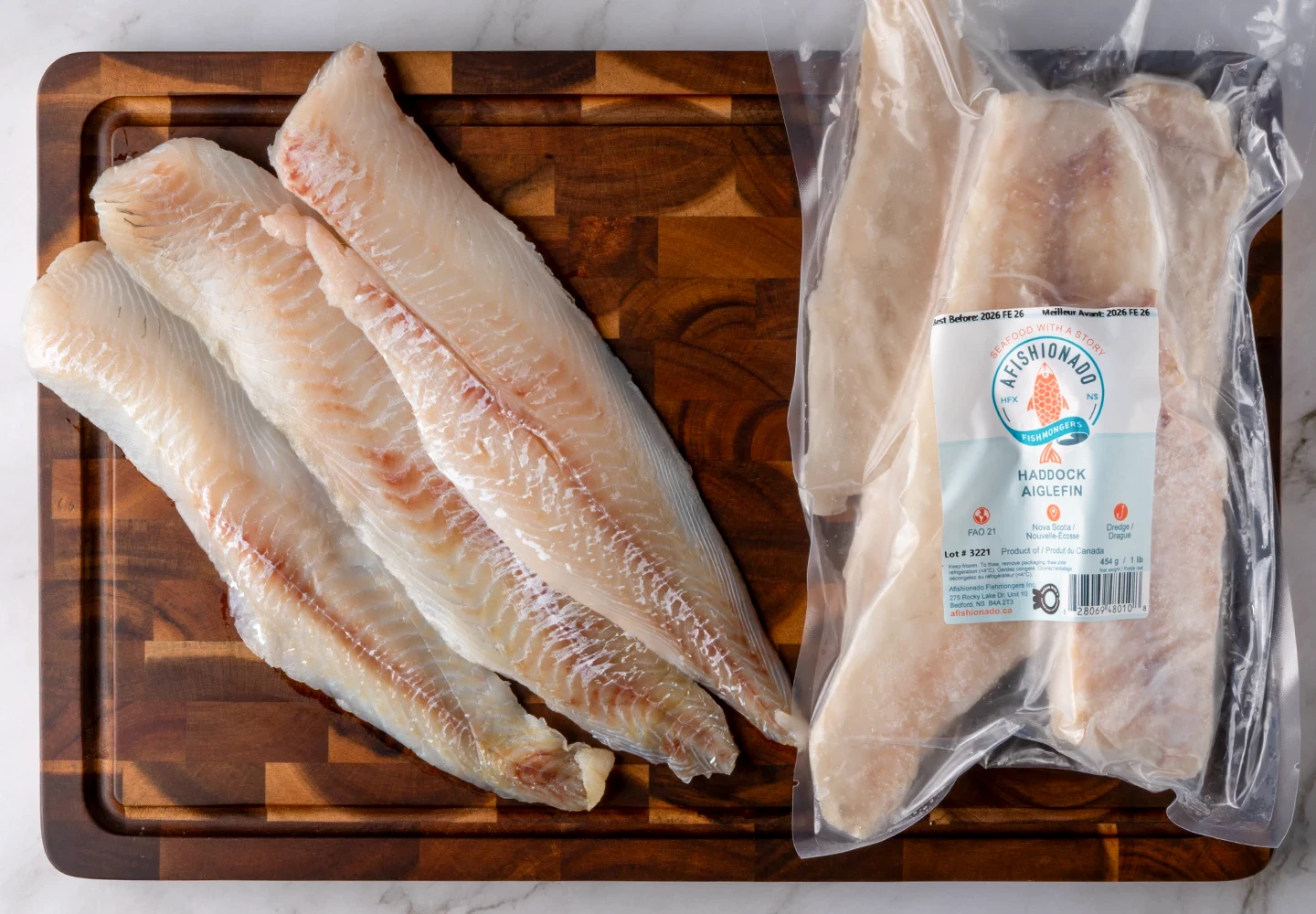 - Haddock fished in the cold Atlantic waters off Nova Scotia. It’s a mild, slightly sweet white fish with a clean taste, fine flaky texture, and a hint of ocean brininess.