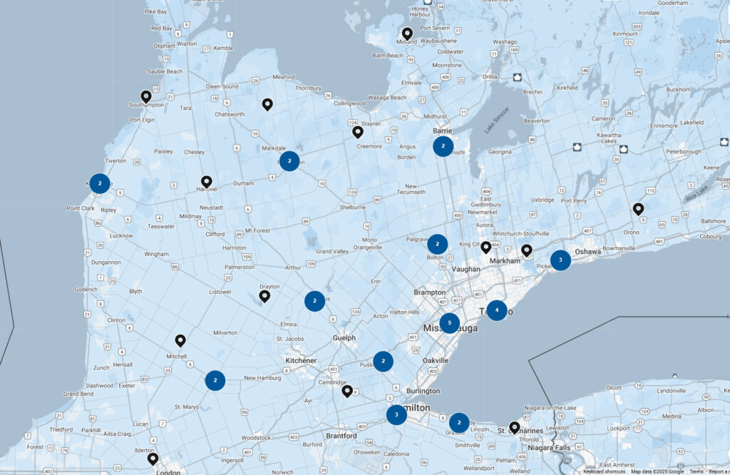 - Zone B – Collingwood, Flesherton, Hanover, Markdale, Meaford, Owen Sound, Stayner, Wasaga Beach, Walkerton